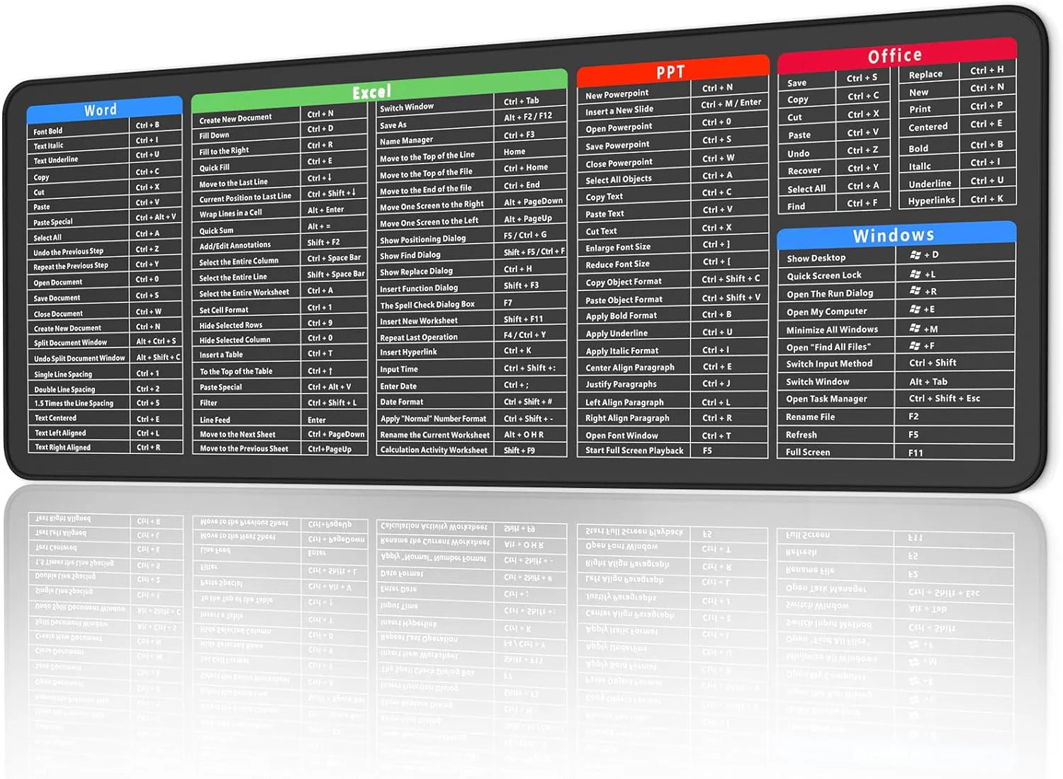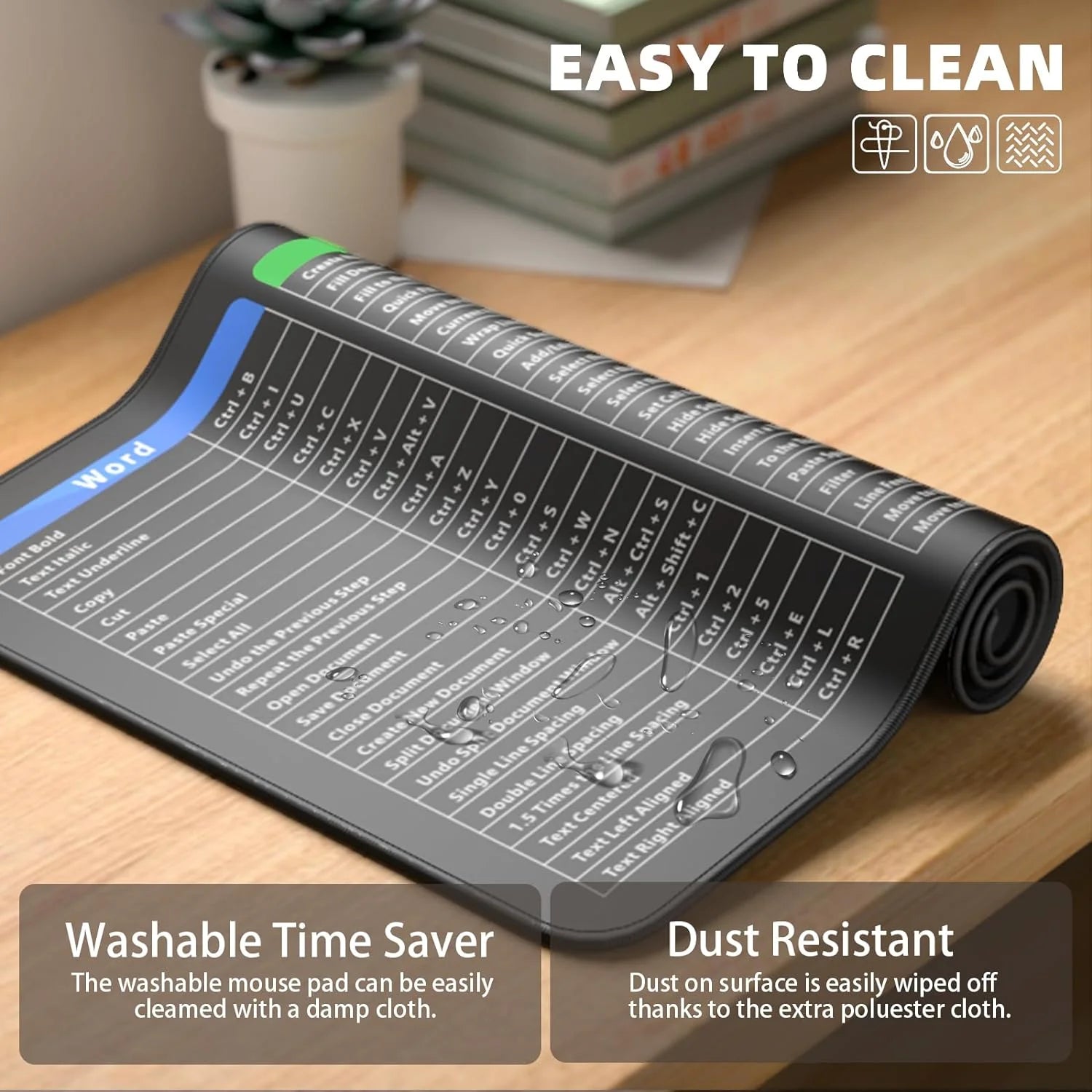 Natural Rubber Material: Made from eco-friendly, odorless natural rubber. The pad is breathable, waterproof, and washable without fading. The high-precision printing ensures the shortcut key pattern remains clear and durable.
