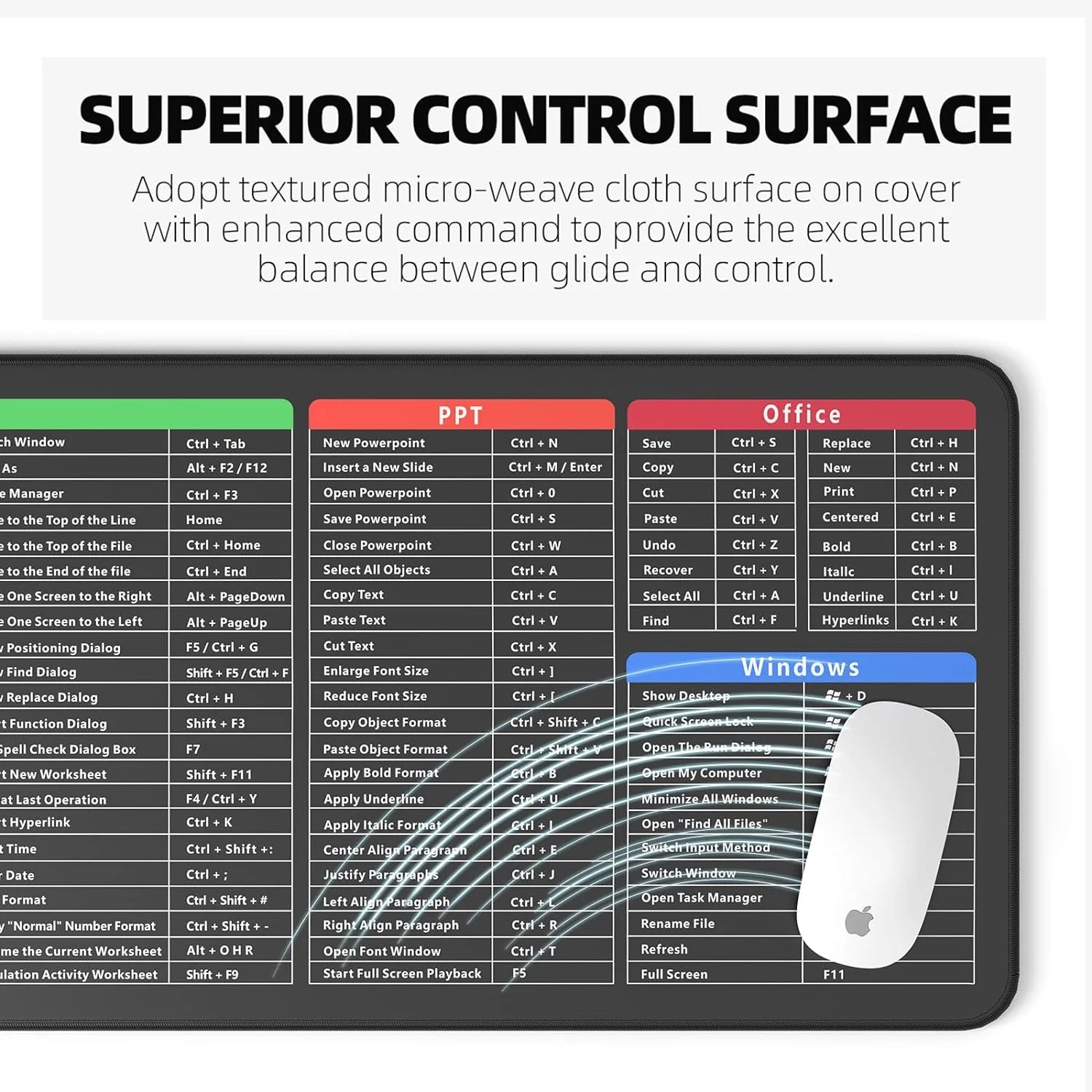 Clear Shortcut Key Patterns: Designed with easily readable office software shortcut key patterns, this pad helps you quickly access frequently used commands and functions. Reduce the time spent searching for keys and streamline your workflow.