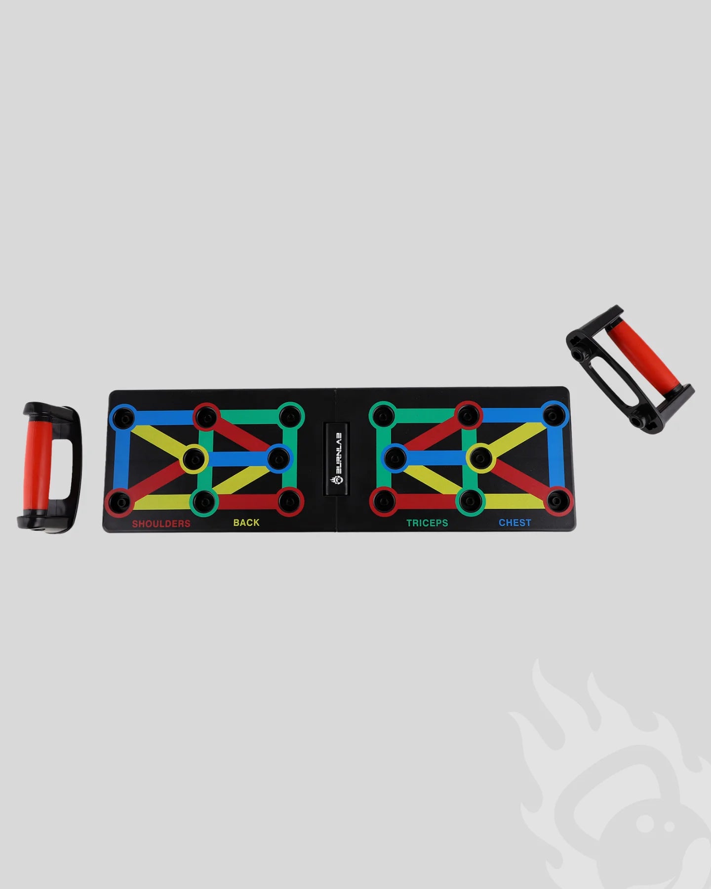 Elevate your fitness routine with the Burnlab Push-Up Board, an innovative color-coded training system designed to strengthen and shape your entire upper body while engaging your core. This push-up board combines effective push-ups with calorie-burning cardio, plyometrics, and core exercises for a comprehensive total-body workout.